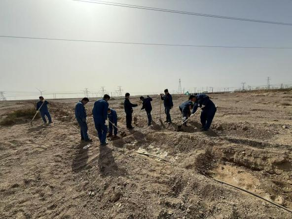踐行生態(tài)文明思想 共建綠色美麗家園——常樂(lè)項(xiàng)目部1200株紅柳扎根戈壁